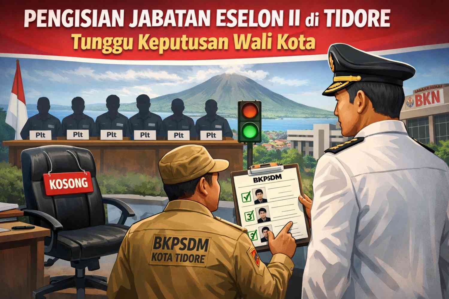 Kepala BKPSDM Kota Tidore Kepulauan, Rusdi Thamrin, mengatakan proses pengisian jabatan eselon II sepenuhnya menunggu arahan pimpinan daerah. Termasuk untuk jabatan Kepala Dinas Kependudukan dan Pencatatan Sipil (Dukcapil) yang akan mengalami kekosongan karena pejabat definitif memasuki masa pensiun pada Januari 2026.