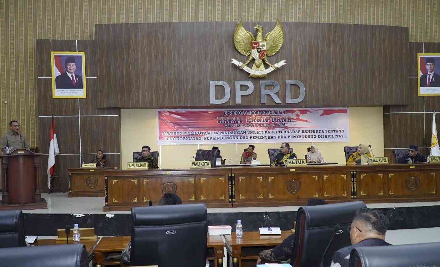 Tanpajeda – Pemerintah Kota Tidore Kepulauan menegaskan komitmennya dalam melindungi hak penyandang disabilitas melalui Rancangan Peraturan Daerah (Ranperda) tentang Penghormatan, Perlindungan, dan Pemenuhan Hak Penyandang Disabilitas. Pernyataan ini disampaikan Wali Kota Tidore, Muhammad Sinen, saat menyampaikan Pidato Jawaban Wali Kota atas Pandangan Umum Fraksi pada Rapat Paripurna DPRD Kota Tidore Kepulauan, Rabu (11/2/2026) malam.